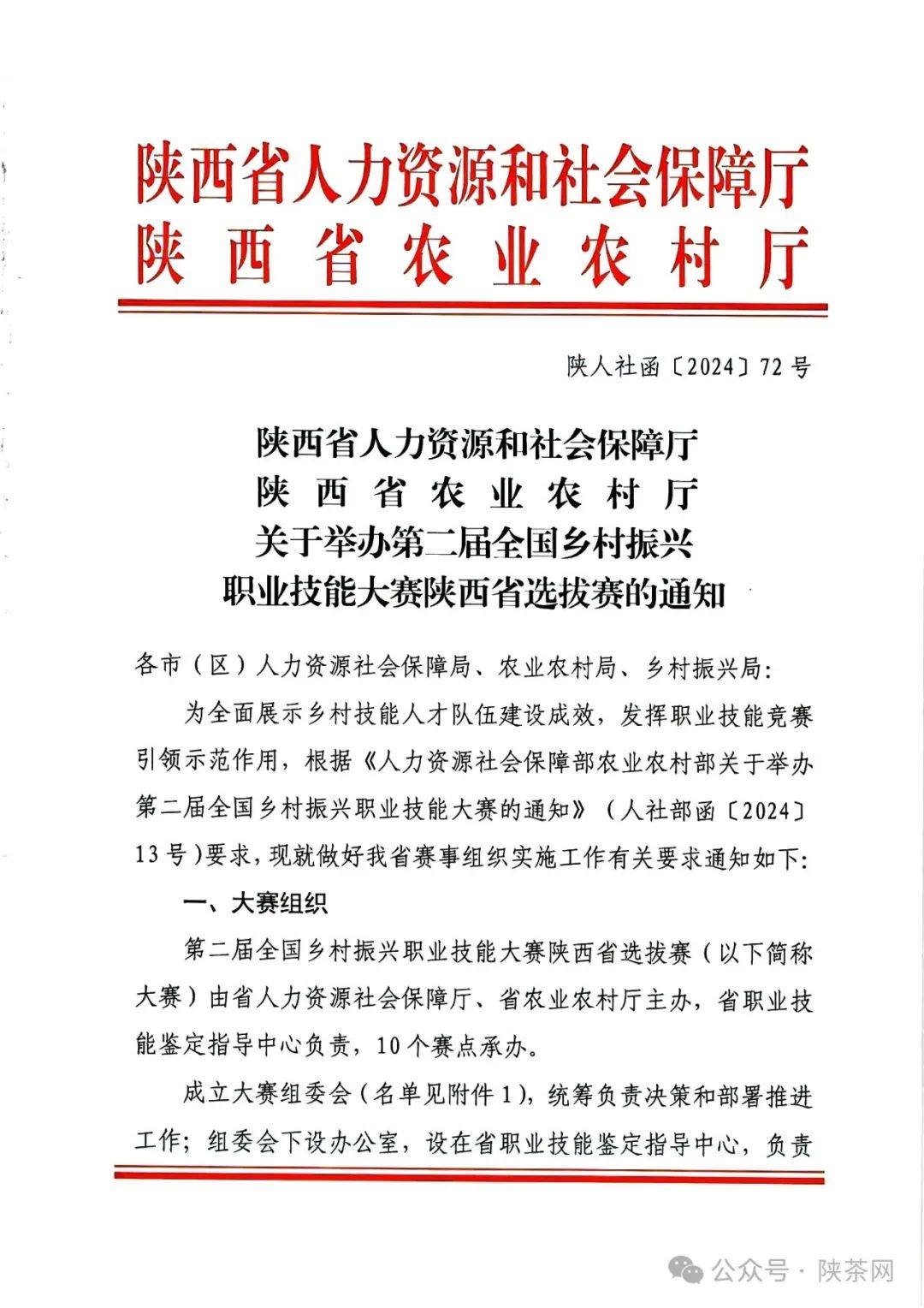 陕西省人力资源和社会保障厅 陕西省农业农村厅关于举办第二届全国乡村振兴职业技能大赛陕西省选拔赛的通知